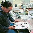 Allra helst arbetar han med riktigt stora format, "ju större desto bättre". Men det blir allt som oftast stuvbitar över och de ska också användas, poängterar han. Följaktligen gör han även miniatyrer emellanåt...